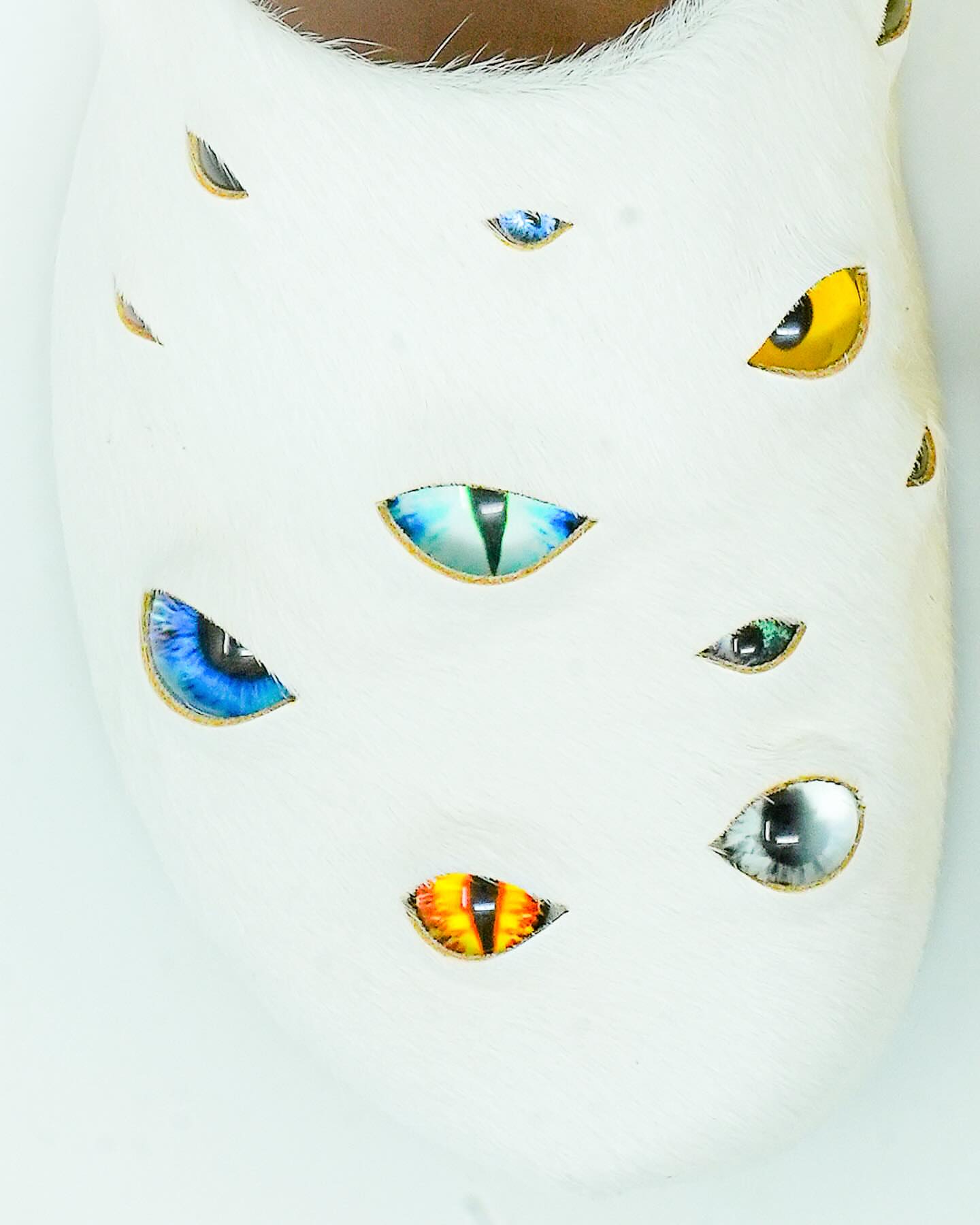 26 unique hand-placed glass eyes in various sizes and hues, creating a playful yet eerie effect.HypebeastSportskeeda