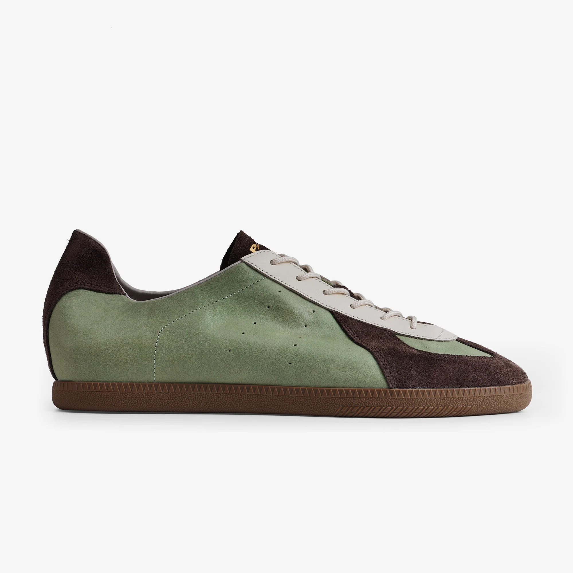 Waxed leather, vegetable-tanned leather, and suede paneling for a refined texture. Half-latex support insole adds stability and comfort, while the vintage-finished outsole lends a retro touch. Comes with off-white nylon round laces and yellow–purple dotted round laces for versatile styling.