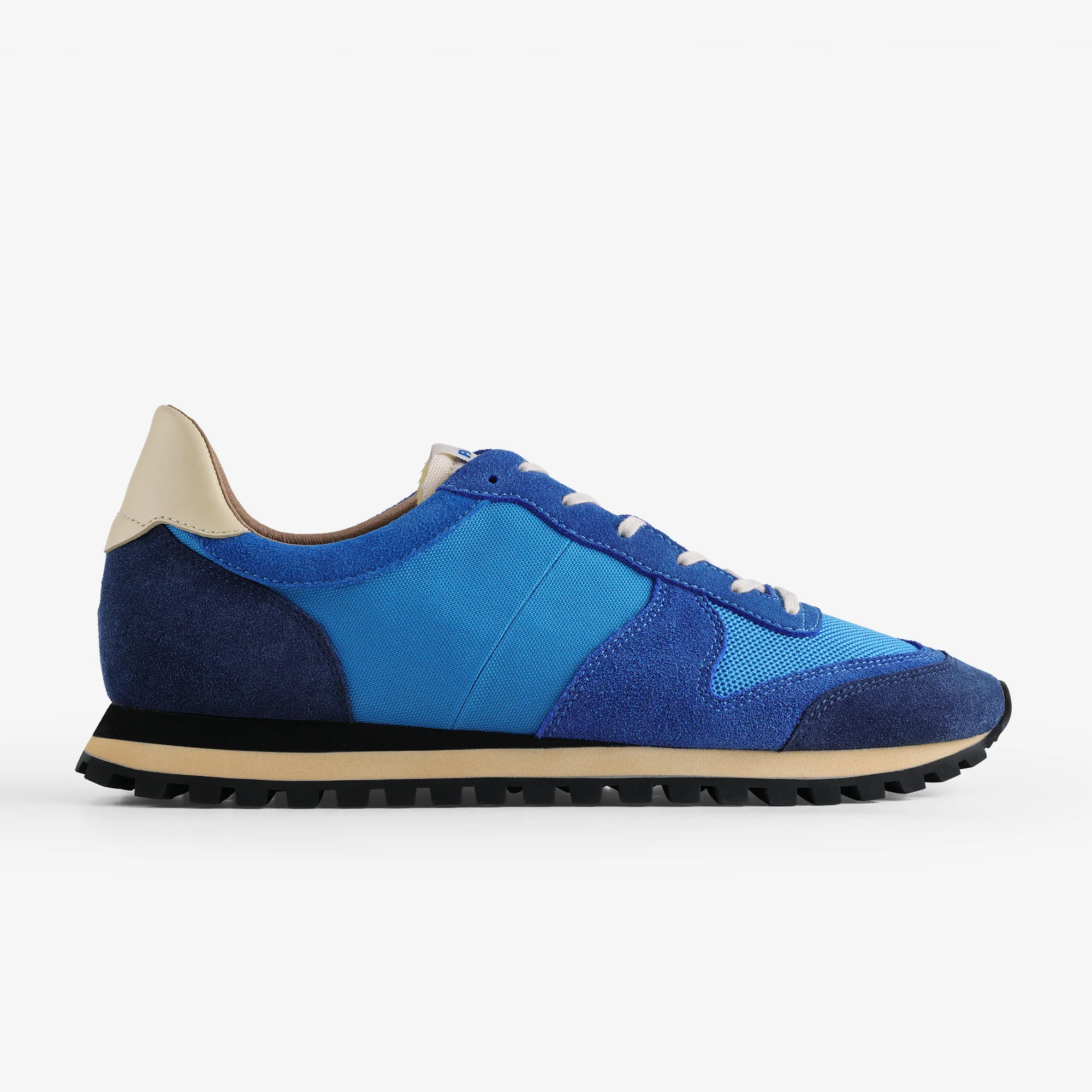 1950s Retro Runner,Designed with a streamlined 1950s-inspired runner silhouette, this style combines washed suede with breathable mesh paneling. A tidal blue gradient finish sets a distinct tone, complemented by an Ortholite moisture-wicking insole and an EVA–cork composite midsole for comfort and durability. The refined arch-contoured shape enhances fit while keeping the profile sleek.